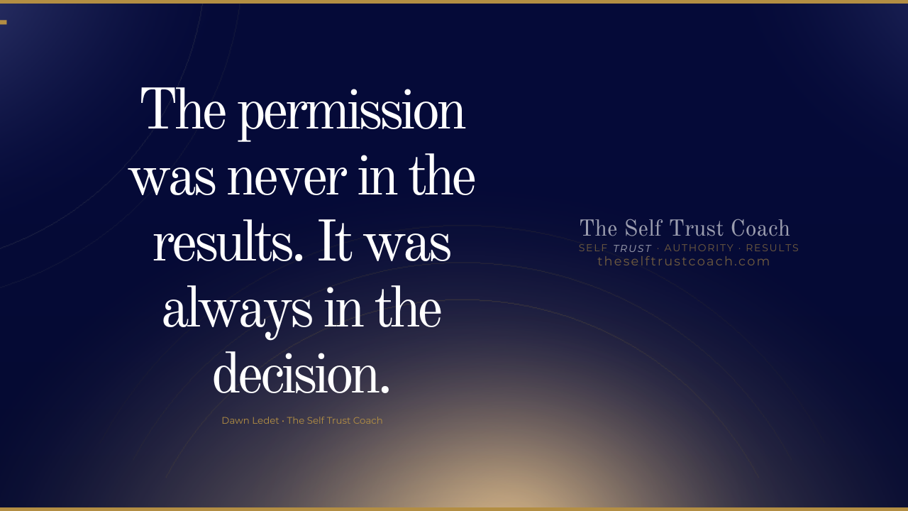 That moment doesn't arrive through results. Not because you're not capable of creating the results — you are, and you have been. But because the permission was never in the results. It was always in the decision.